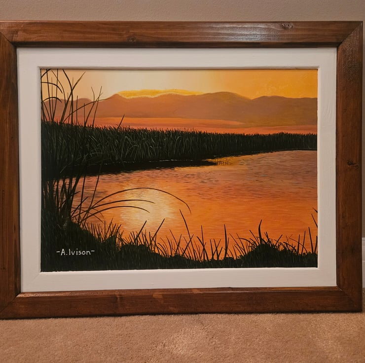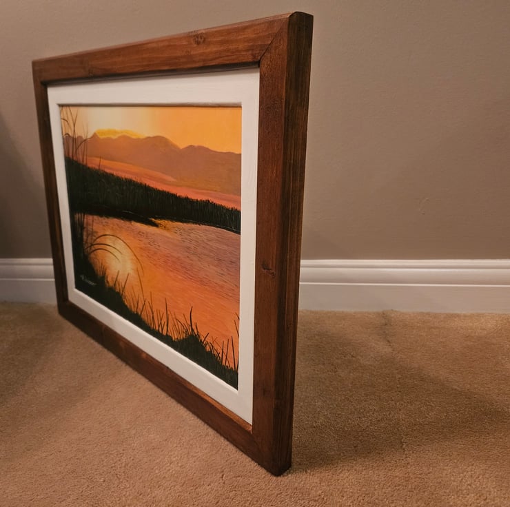 Original oil painting, 40cm x 30cm painted on MDF board. Hand made frame