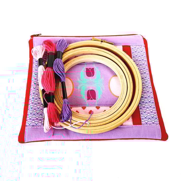 The pouch would make a cute and useful gift or a treat for yourself, it could be used as a make-up brushes /cosmetics bag, as an embroidery project bag (fits a 6 inch embroidery hoop) / sewing notions pouch, to store an E-Reader and Tech cables / Mobile phone chargers etc. Check size before buying for an E-Reader.