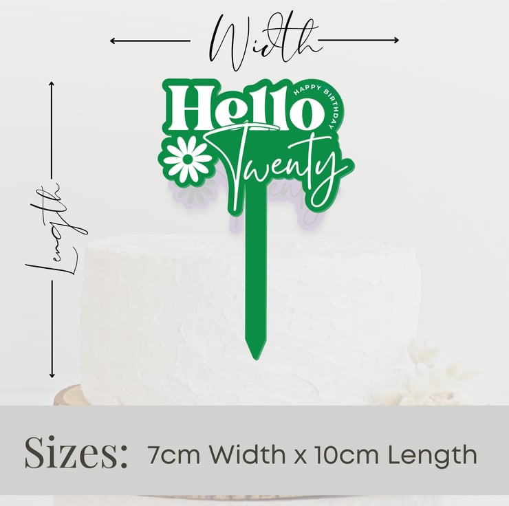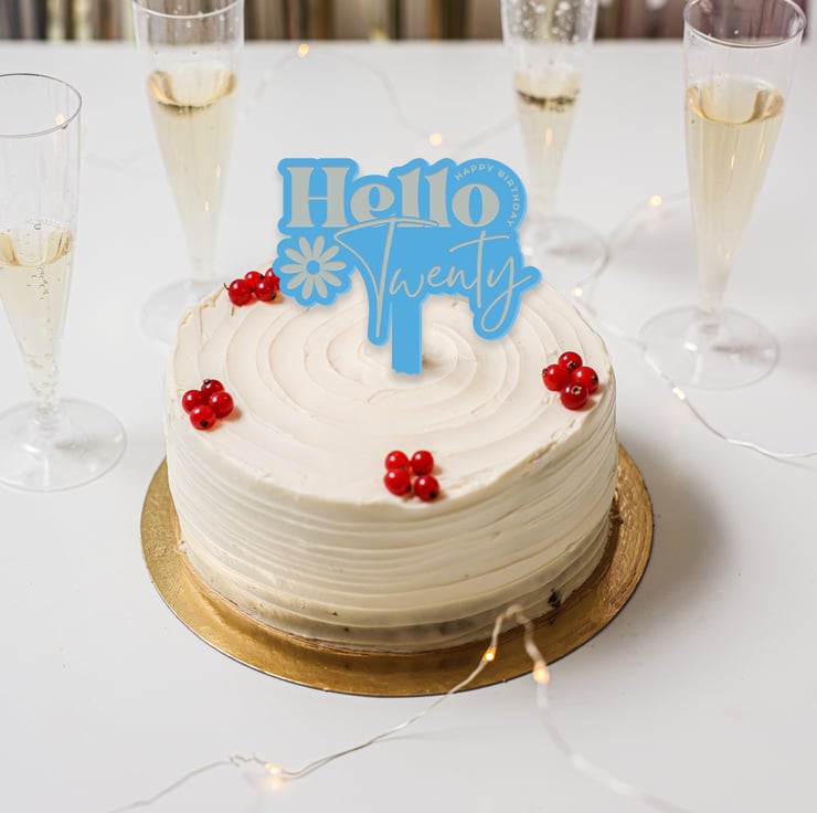 Welcome the new decade in style with our charming "Hello Twenty" cake topper! Crafted with precision and care, this delightful accessory is the perfect addition to your milestone birthday celebration. Whether you're bidding adieu to your teenage years or embracing the excitement of your twenties, this topper serves as a joyful reminder of the adventures that lie ahead.