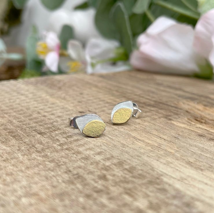These elegant stud earrings are handcrafted from .925 sterling silver and brass and inspired by little leaves.