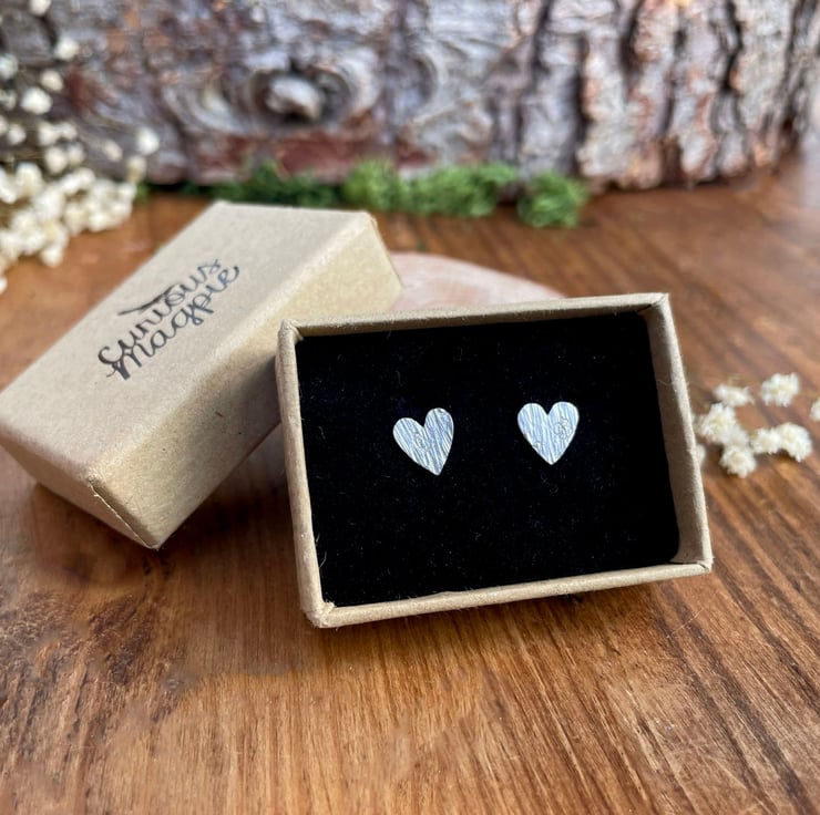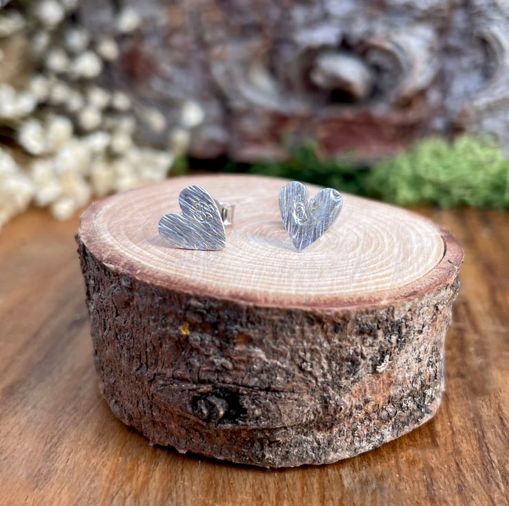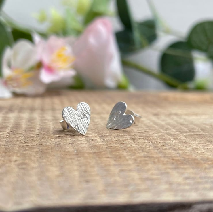 Inspired by tree bark texture, these cute little heart shape stud earrings sit flat on the earlobe making them perfect for everyday wear.