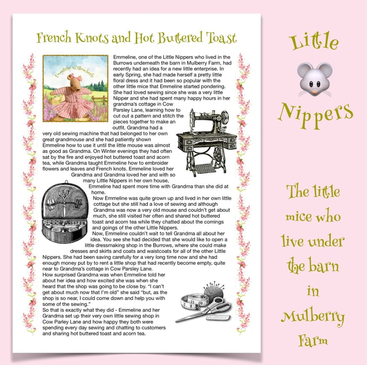 Little Nippers are a whole community of tiny wood mice, who live in a maze of little burrows and passages underneath the floor of the barn at Mulberry Farm. They are sometimes very hard to spot and Maisy and her friends rarely see them - but they are always there. The tiny mice all have their own cosy little cottages inside the burrows and work very hard in the fields, gathering seeds and berries, tiny fruits and bits of grain to take back to the burrows to be made into food. They even have their own little barn shops, where they can share the things they find in the fields and get the food they need to look after their families. They are a very happy little community who all take care of each other. There are also baby Nippers, who are called Pip Squeaks - these are very small and are not removable from their sleeping bags.