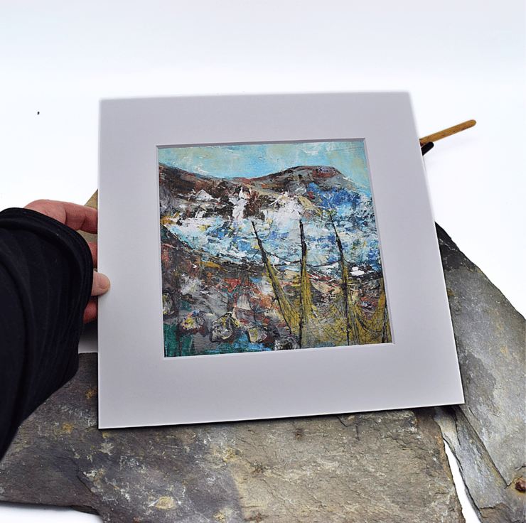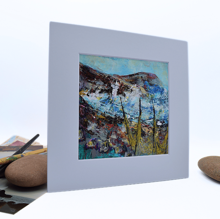 This mounted painting of a coastal landscape will be shipped by 1st class Royal Mail in a reinforced, hard-backed envelope.