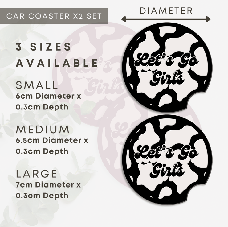 Let's Go Girls - Cow Print Car Coaster Set: Girly Car Accessory, Small Gift