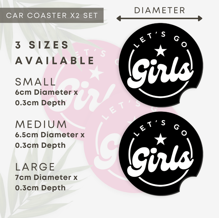 Add a touch of fun and flair to your car with these stylish acrylic car coasters that proudly display the empowering phrase "let's go girls". With a variety of vibrant colours to choose from, these coasters are the ideal girly accessory to keep your car looking fresh and fabulous. Stay inspired and motivated every time you hit the road with these trendy coasters by your side. Let your personality shine through, even while on the go!