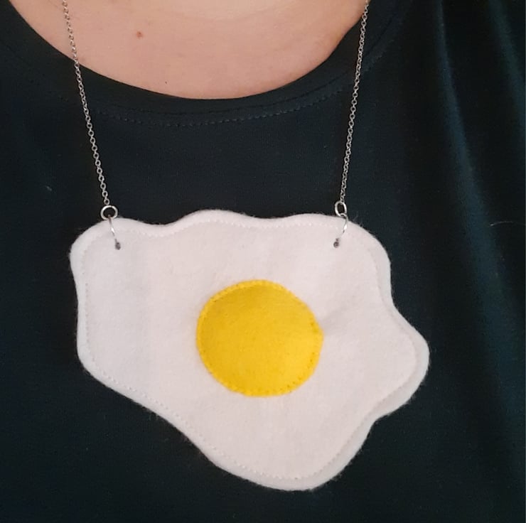 Made from wool blend felt and the yolk is stuffed with polyester toy filling.