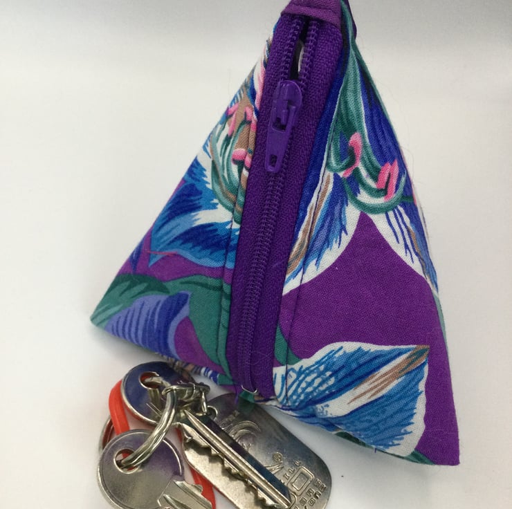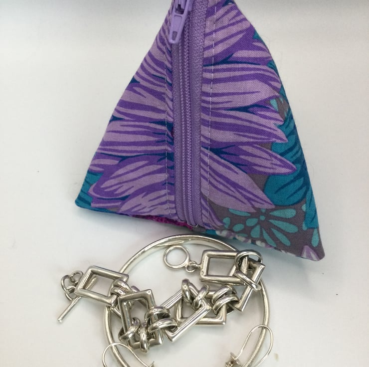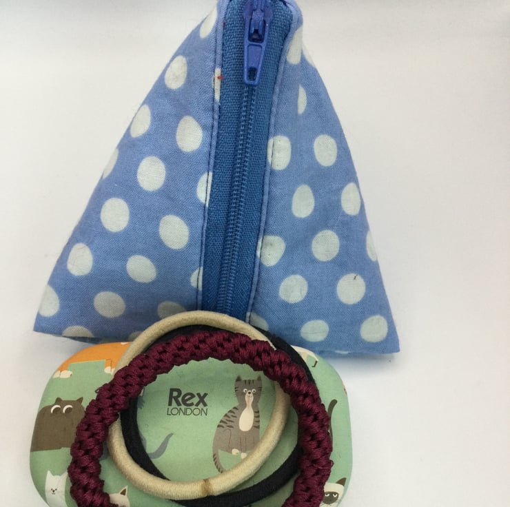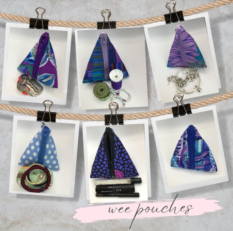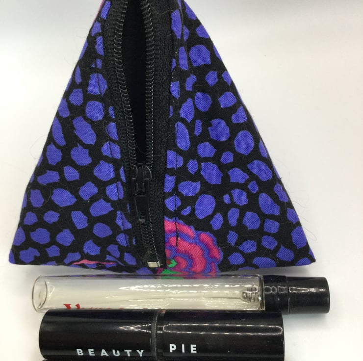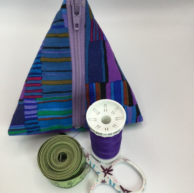 Wee triangle pouches, perfect to hold your phone charger and lead. Good too for a lipstick, hair bobbles, jewellery. Stunning Kaffe Fasset fabric with soft layer of wadding. Various fabrics available. Size approximately 10/11cm on each side.