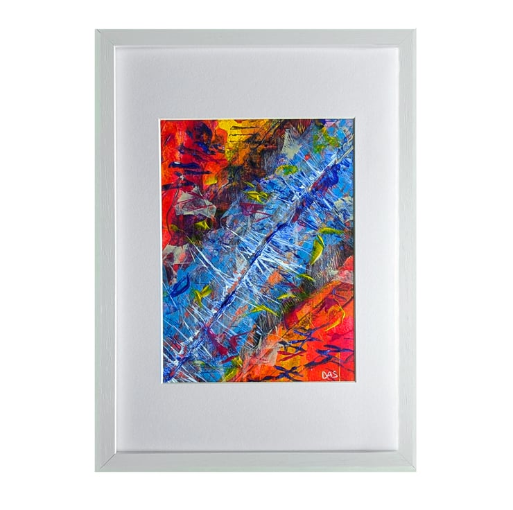 An original acrylic painting on paper complete in white A4 frame. Signed by the artist and varnished. Total size including the A4 frame is 31cm x 22.5cm (12 x 9 inches). The painting itself within its mount is 18.5 x 13.5 cm (7.25 x 5.25 inches).