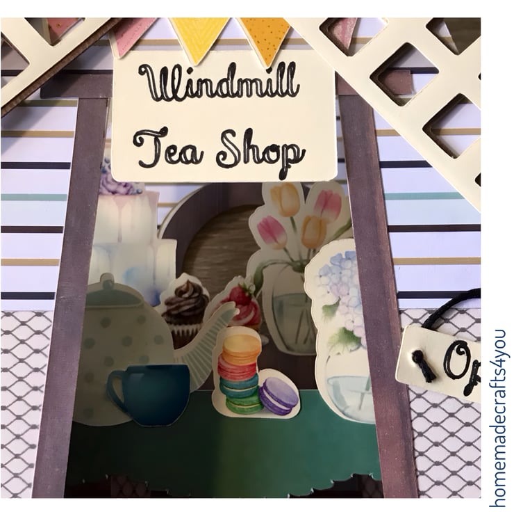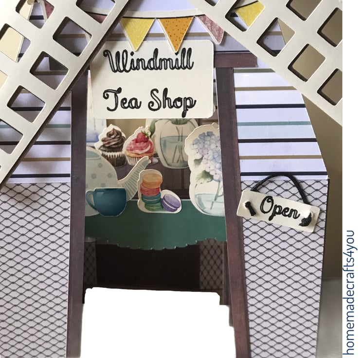 A 3D card in the shape of a Windmill Tea Shop.