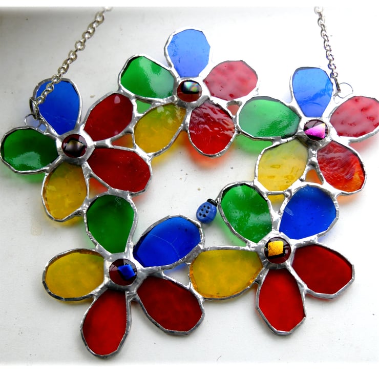I've made the central flower nuggets in my kiln, red glass each topped with precious dichroic glass.