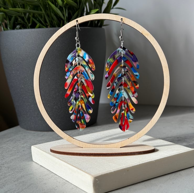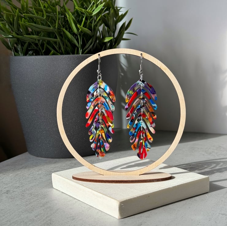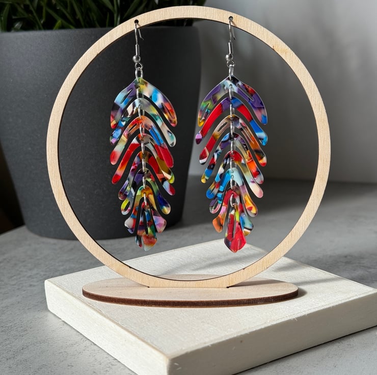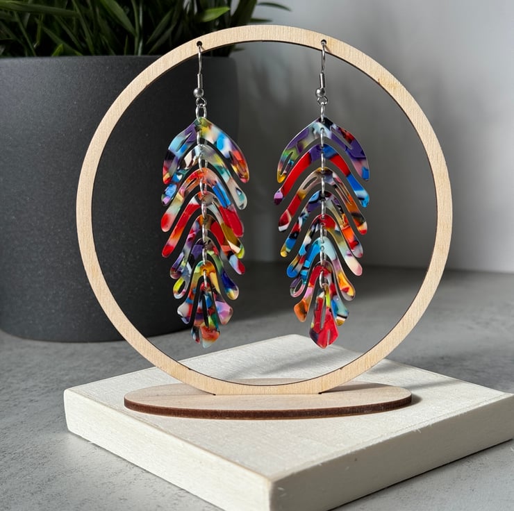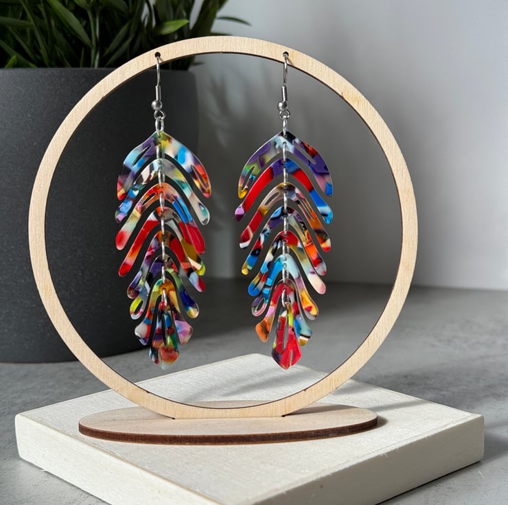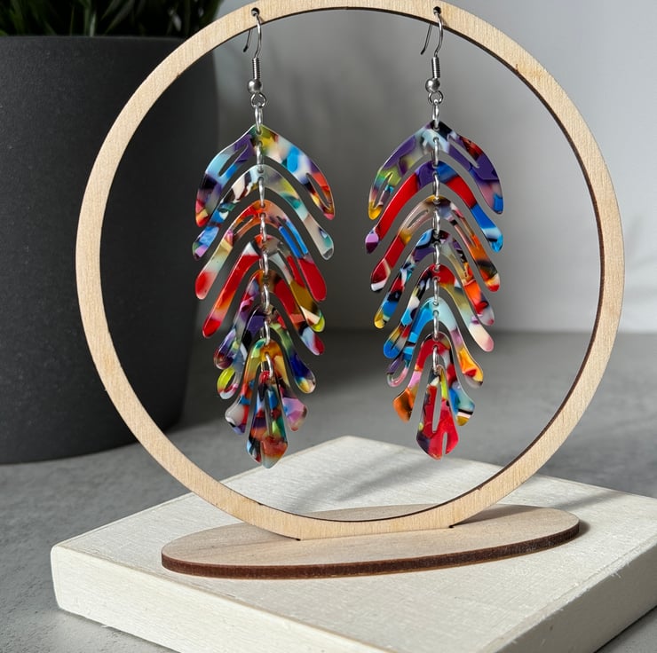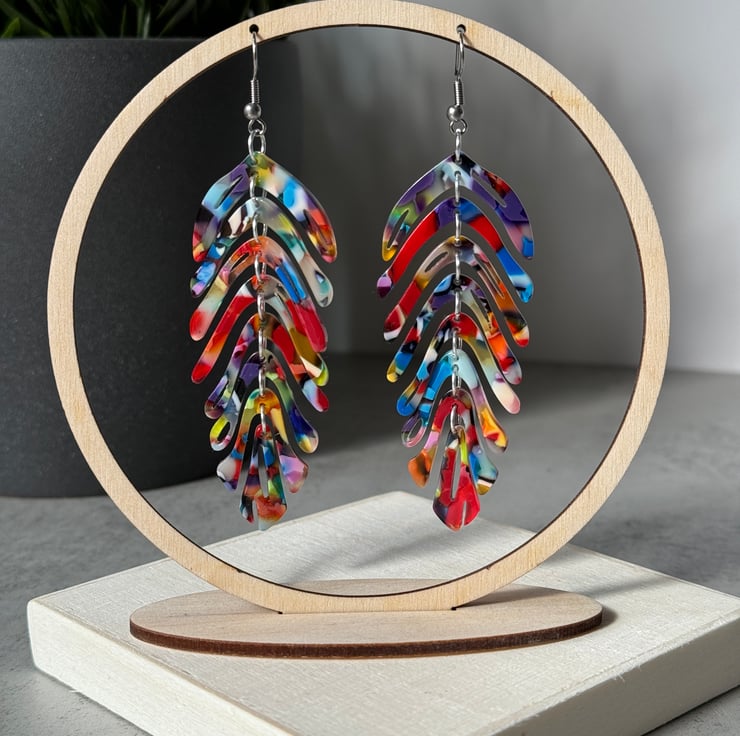 Multi colour flecks of Red, Purple, Yellow, Black, White, Blues, Orange and Green colourings