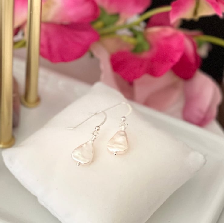 Beautiful lustre pearl drop earrings on Sterling Silver