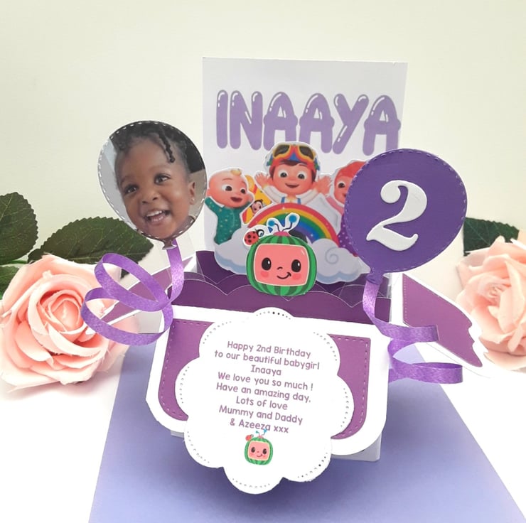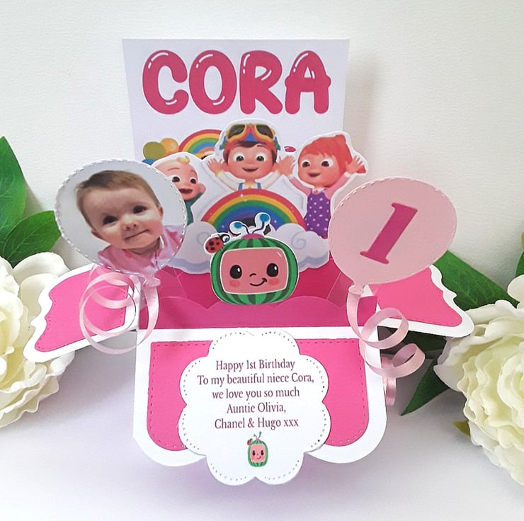HANDMADE PERSONALISED COCOMELON POP UP CARD BOX, PERSONALISED COCOMELON CENTREPI
