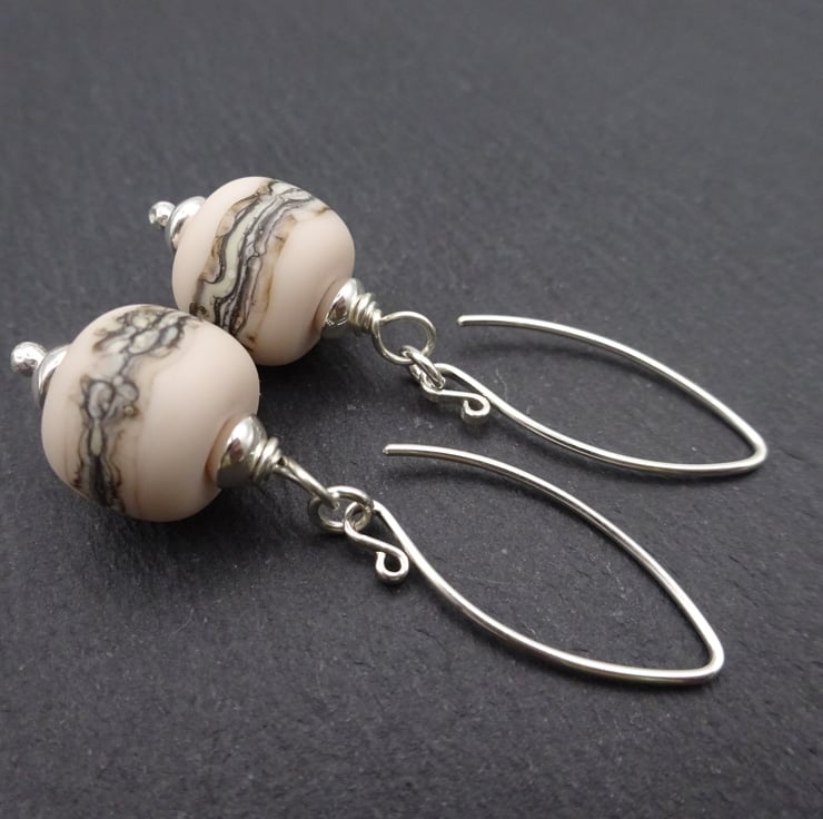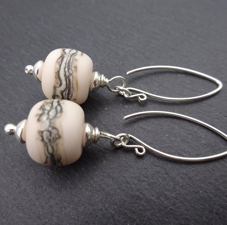 The lampwork glass beads have been handmade by me using peach glass, they have been shaped and wrapped with ivory glass and tumbled for a smooth finish.