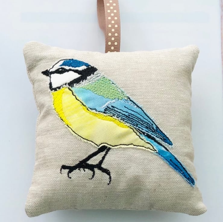 The beautiful colours of the tiny Blue Tit is a favourite of the British Birds and this beautiful Raw Edged Appliquéd BLUE TIT bird design would make an ideal gift for Bird lovers, Birthdays, Mother's day or a Thank You gift.