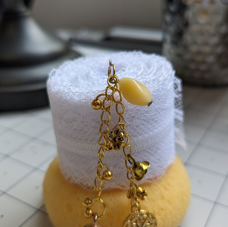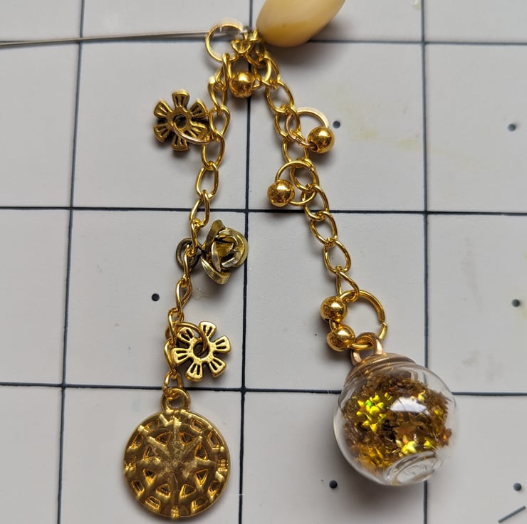 2 gold chain dangles adorned with mixture of gold beads/charms
