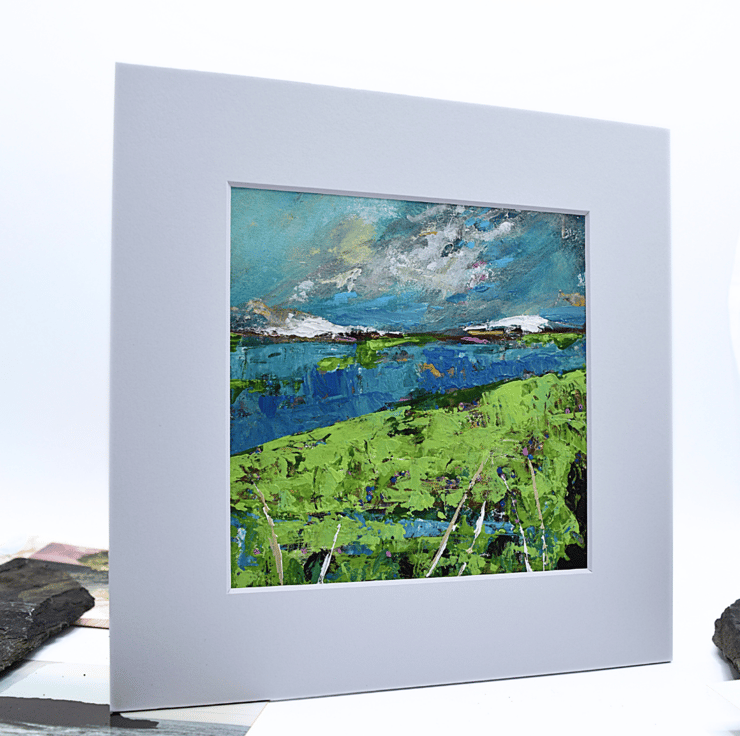 This mounted painting of a Scottish landscape will be shipped by 1st class Royal Mail in a reinforced, hard-backed envelope.