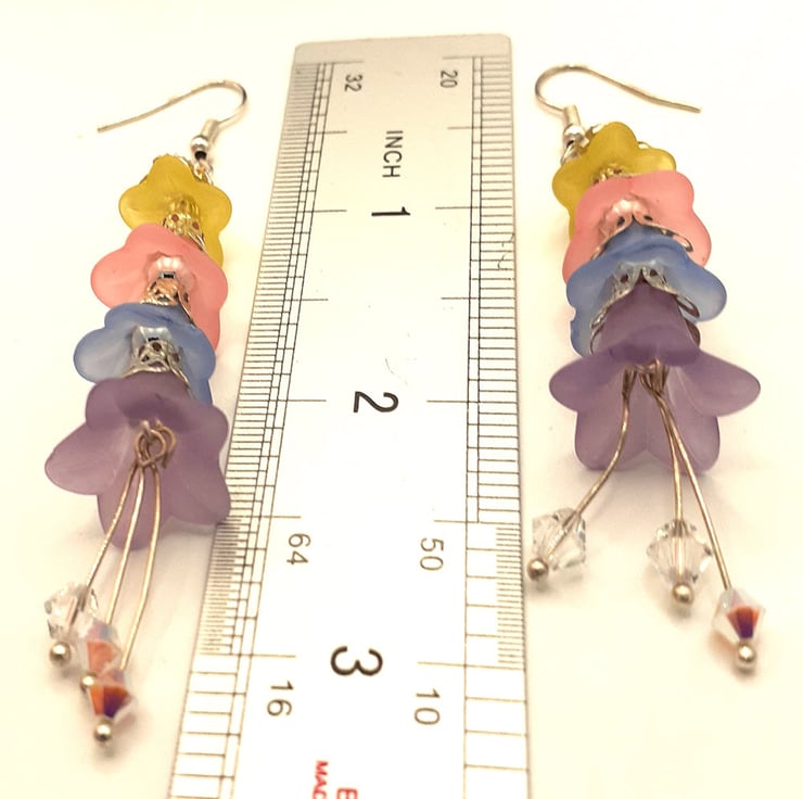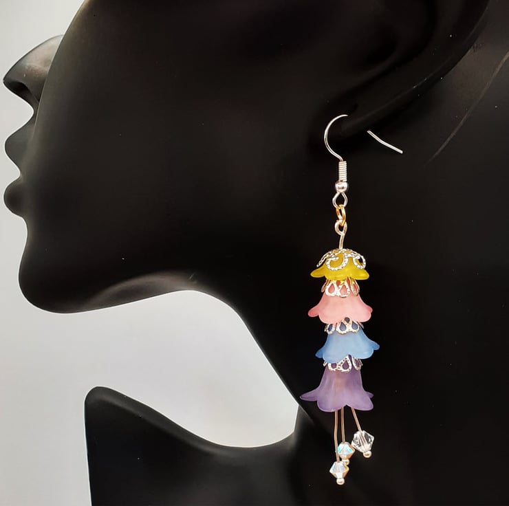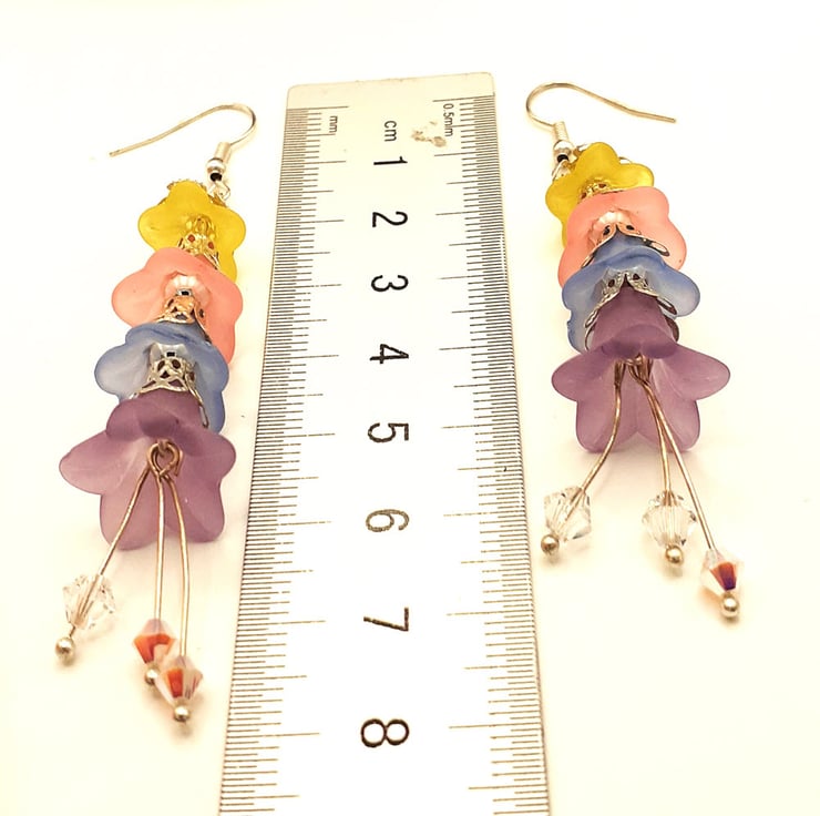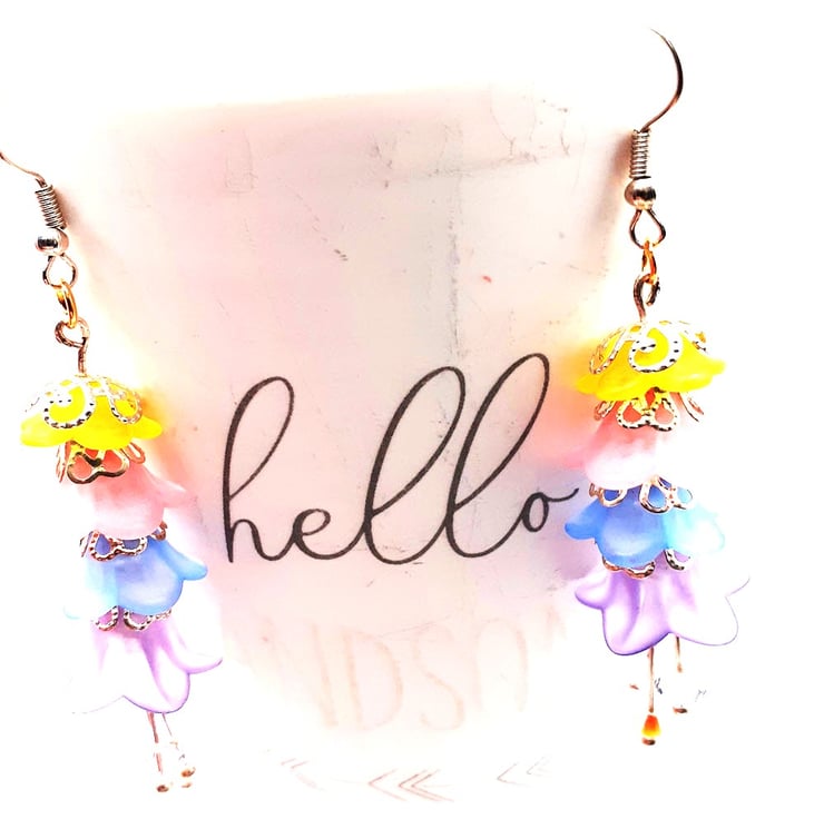 These handmade floral drop earrings bring nature’s beauty to your style. Inspired by delicate blossoms, they feature cascading pastel petals and sparkling beads for an elegant, whimsical look.