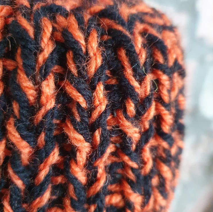 Hand knitted using double strands (two balls at the same time) of Aran weight yarn in a 1 x1 ribbed pattern, makes this cosy extra thick. It's not called a cosy for nothing!