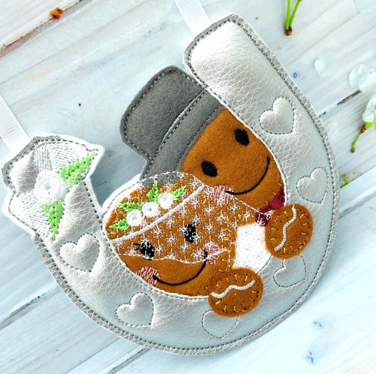 This gorgeous Wedding Horseshoe with Gingerbread Bride & Groom would make a unique Lucky Wedding Day gift.