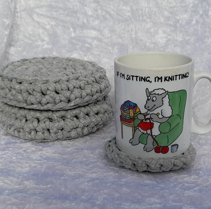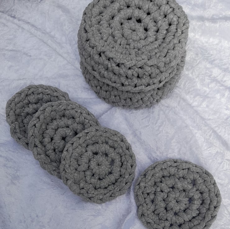 These sustainable coasters are made from post-production cotton t-shirt yarn (that's leftovers from the manufacturing process), it's lightweight, comes in a million colours and you can throw it in the washing machine if it gets grubby.