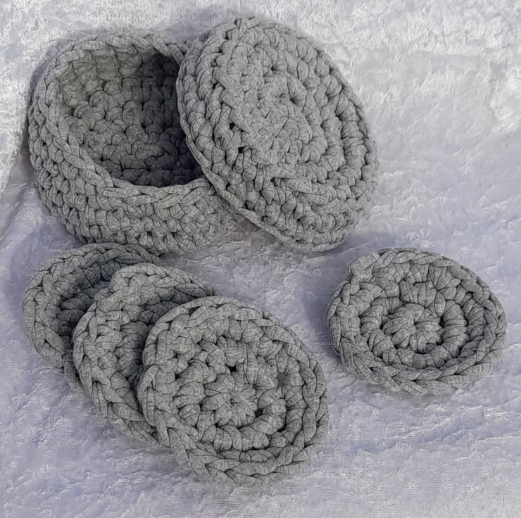 Currently available in Grey, message me if you would like a set in a different colour. Because of the upcycled nature of this yarn, I can't guarantee specific colours, it comes in colour groups like Bright Pink.