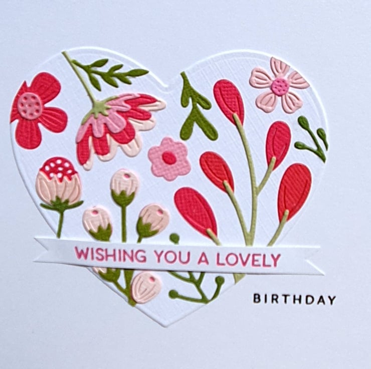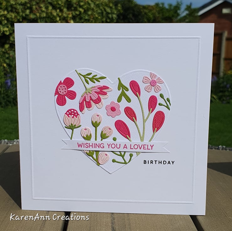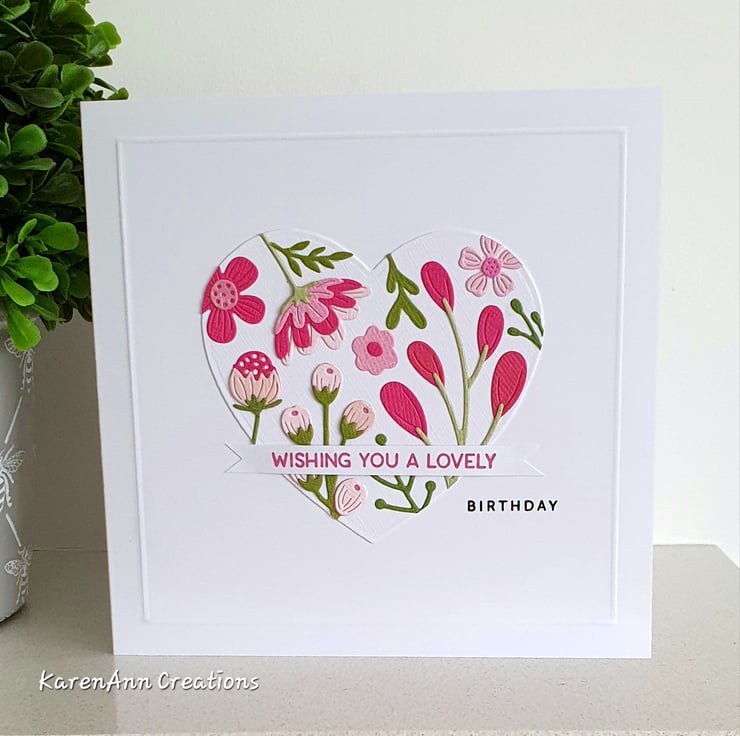 The heart has been cut from Linen card and then decorated with die cut flowers and leaves. They look almost like embroidered flowers and are very tactile.