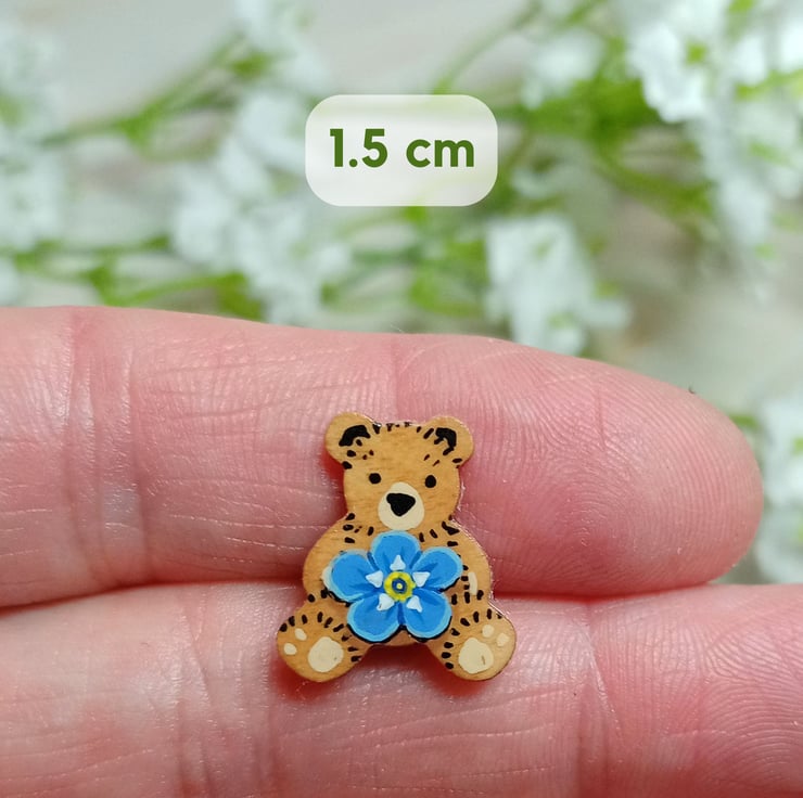 Honour the memory of a loved one who has passed with this handmade tiny teddy bear pin, which has been hand crafted from wood and beautifully hand painted with a forget me not. Forget me nots are the symbol of a promise to remember a loved one, so keep this small, discrete bear close to your heart in their memory. As these bears are all beautifully and individually gift wrapped, they make a touching gift to give out at funerals.