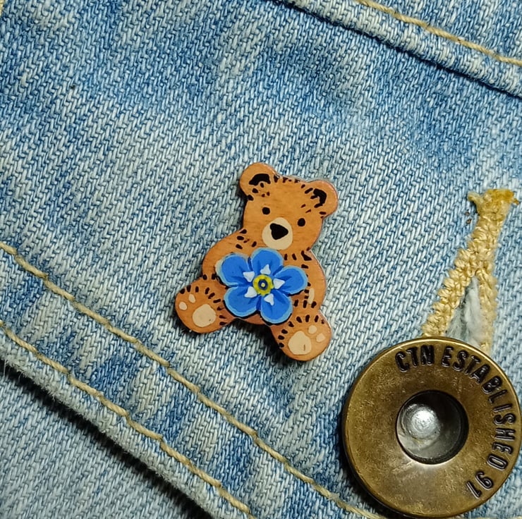Tiny Forget Me Not Bear Pin, Handmade Dementia Memorial Gift, Teddy Bear Badge