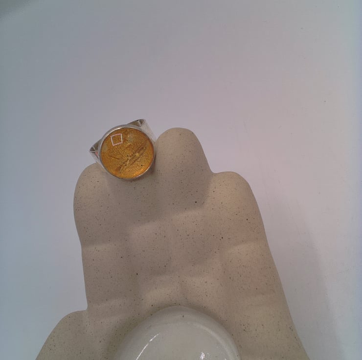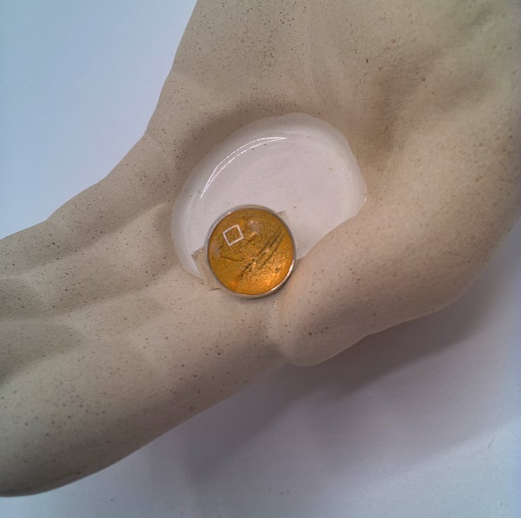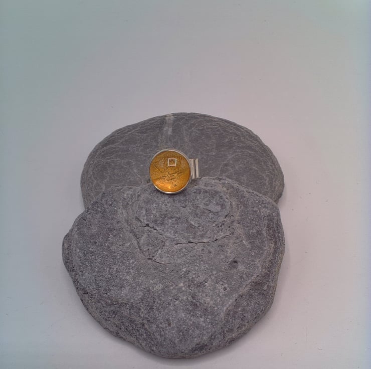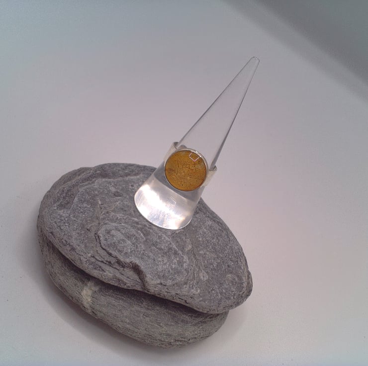 This very pretty adjustable ring would make an ideal gift for a friend or relative for a birthday or Christmas, or it would make a nice treat for yourself. It would go well with any of your Spring or Summer outfits for a day out, for a casual party, or for everyday wear. This "mystical" fantasy ring has an adjustable base so it will fit most sized fingers and it has a 15 mm round yellow dragons eye cabochon set on it. The ring base is silver plated. The ring will be dispatched wrapped in tissue paper in an organza bag and delivered to you via Royal Mail first class post. The actual shade of the cabochon may vary depending upon your monitor set up.