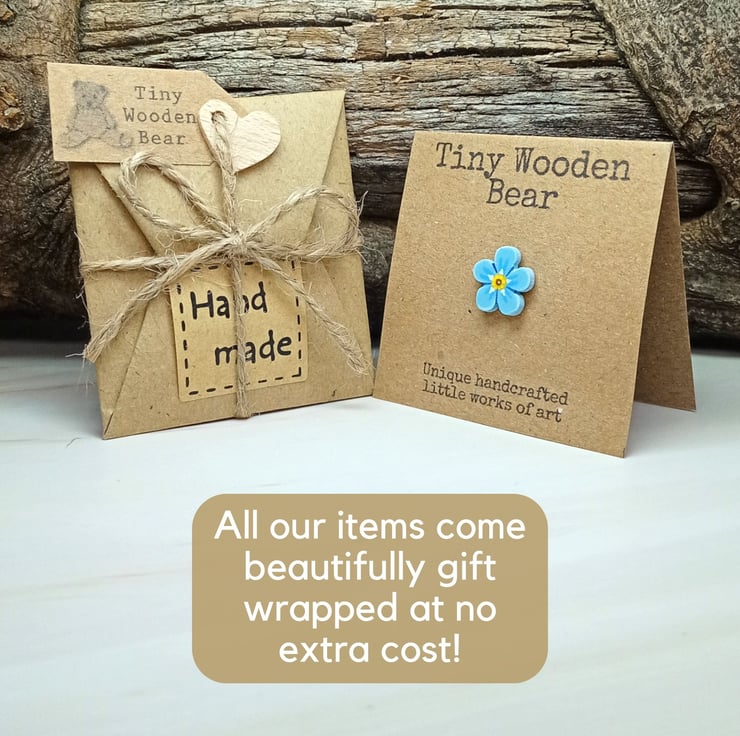 This handmade wooden forget me not pin is small and discrete but exquisitely and delicately hand painted. Use it to symbolise remembrance and love for someone you have lost, or give it as a bereavement gift. Giving it to someone who is leaving shows they will be remembered.