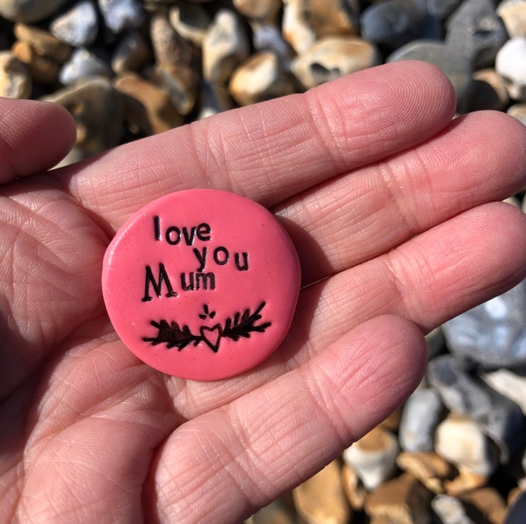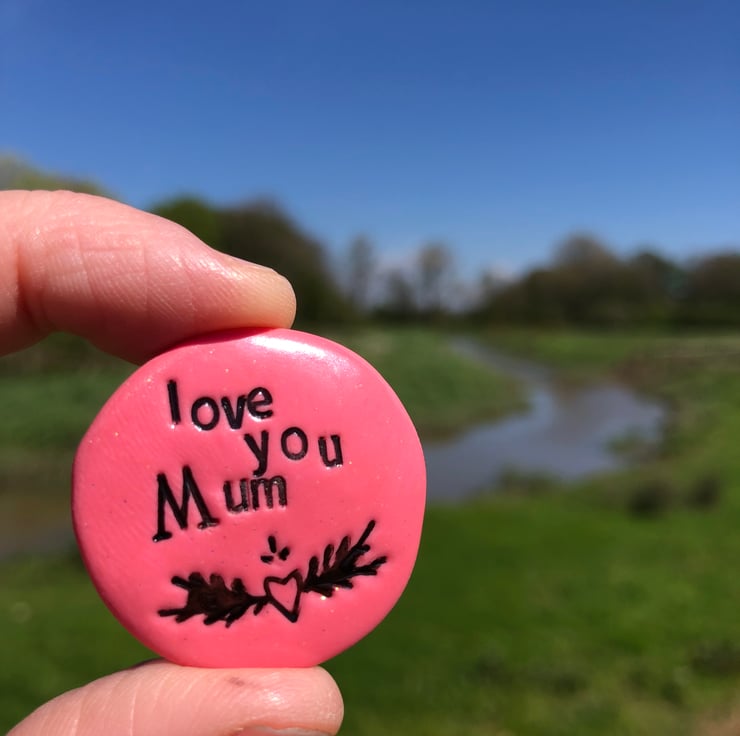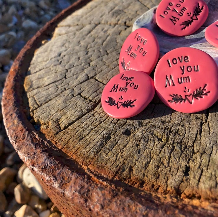 As a primary school art teacher, I know that words have the power to build and encourage and I get to see the joy of word spoken light up a little face. I started making these polymer pebbles as flower designs on cards, but was quickly asked to make these as pebbles that could be held and treasured. Words were then added to produce the designs you see before you.