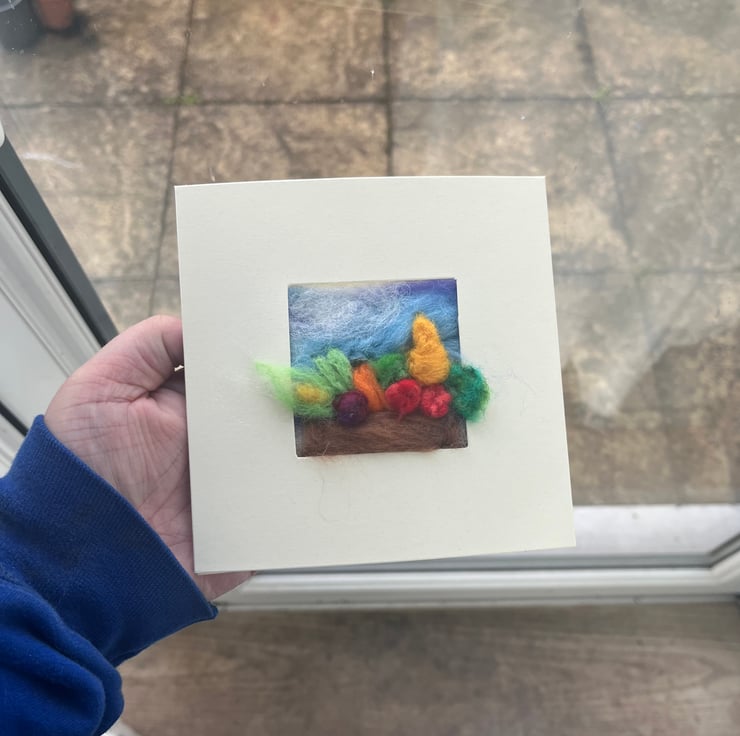 Original needle felt art as a card. Perfect for the gardener in your life - a card AND a gift in one!