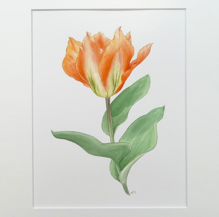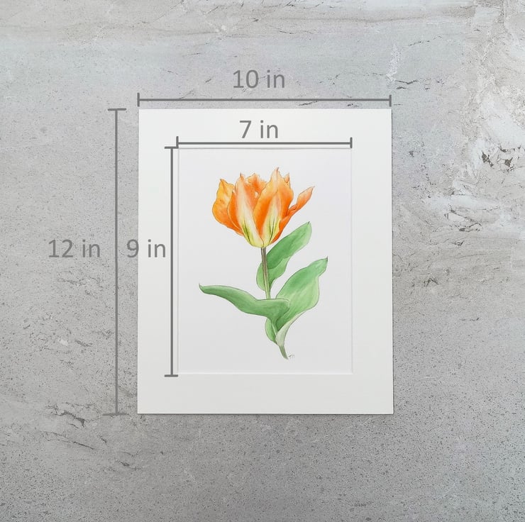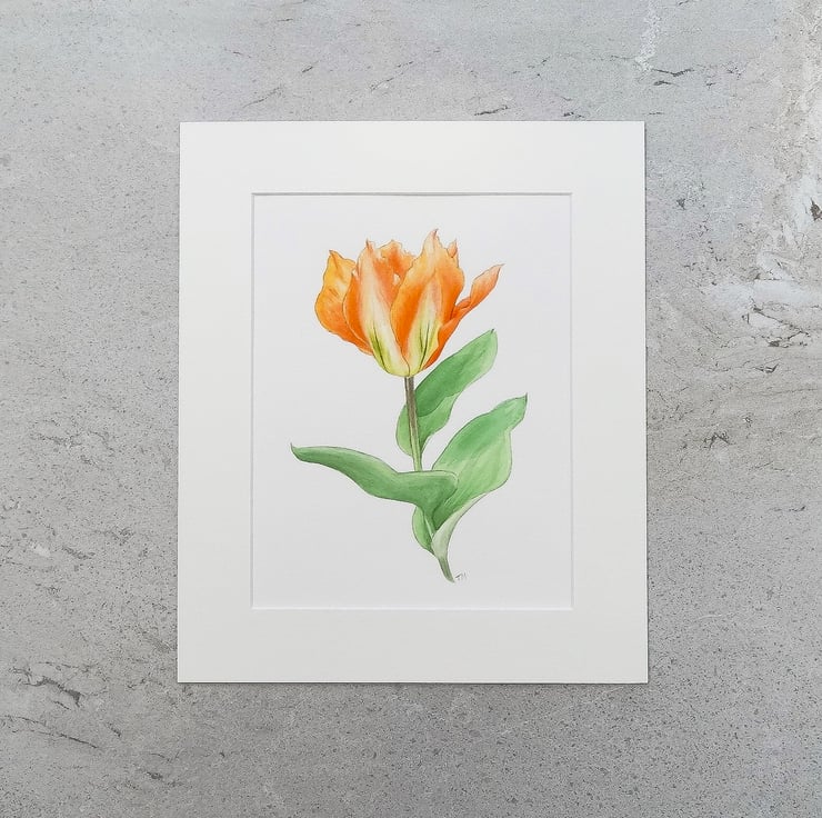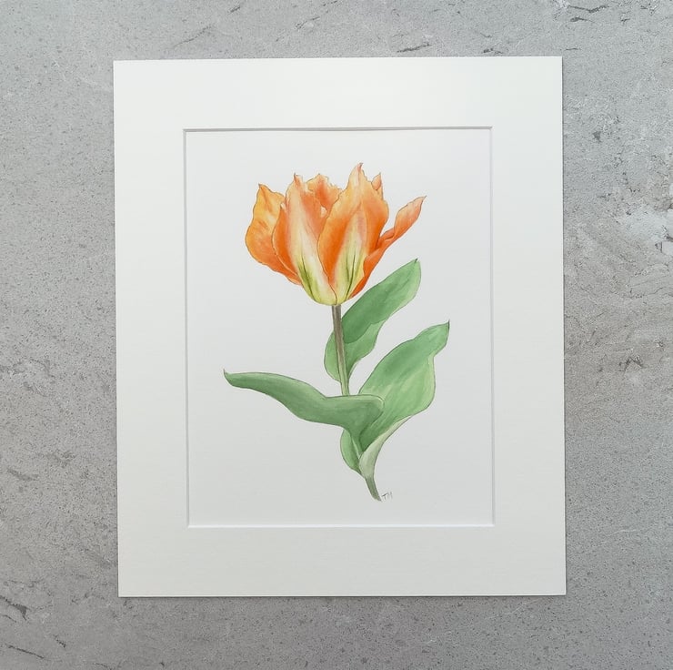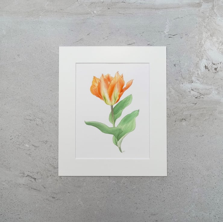 My original 'Exotic Emperor Tulip' watercolour painting has been mounted in a quality soft white mount and comes with backing board ready for framing. It has been painted using quality paints on to acid free watercolour paper and comes with a Certificate of Authenticity.