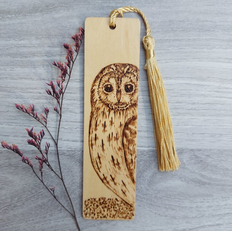 This tawny owl wood bookmark would be an ideal gift for a nature lover. All my bookmarks are unique because I sketch the design straight onto the wood, and then burn the design by hand using a pyrography tool. These are handmade collectable art, not laser engraved.