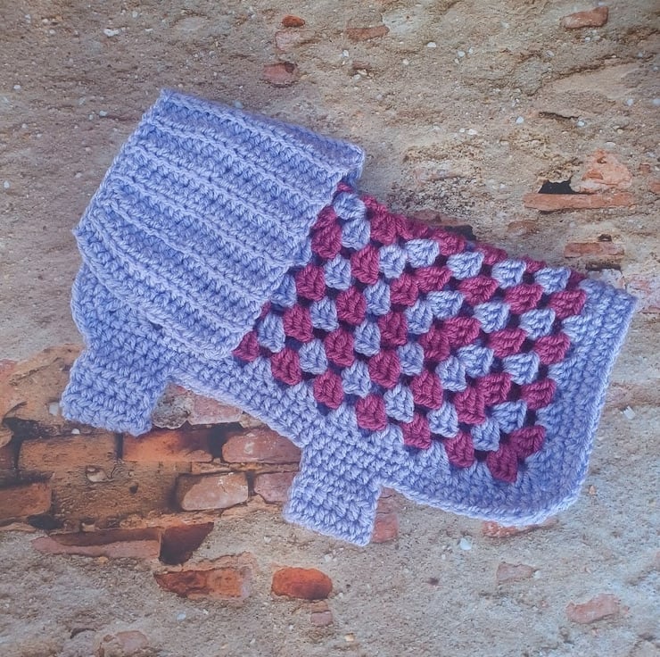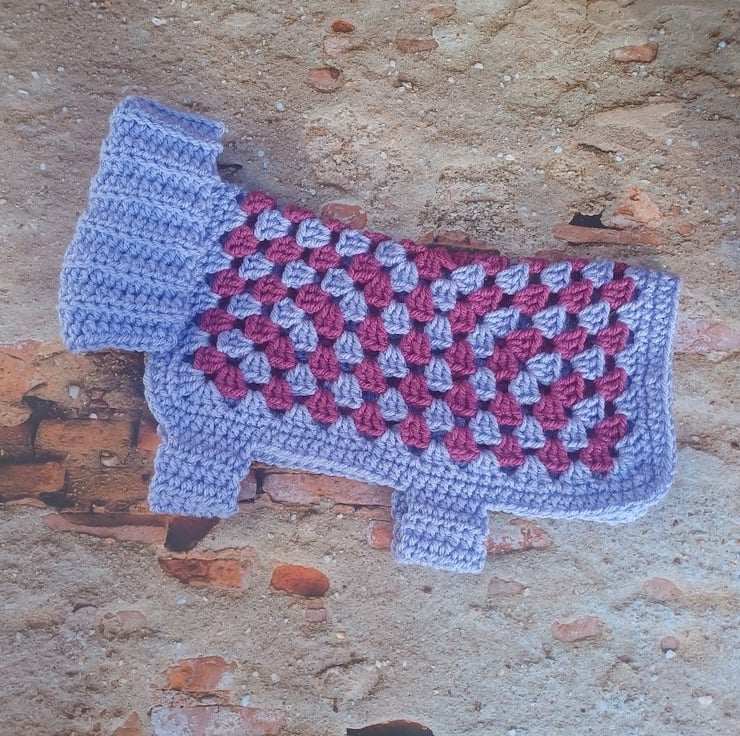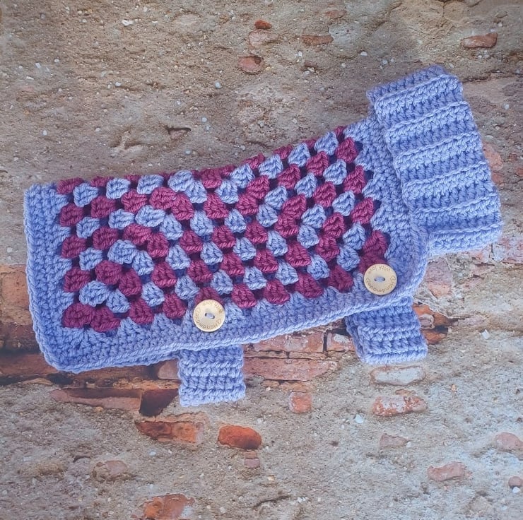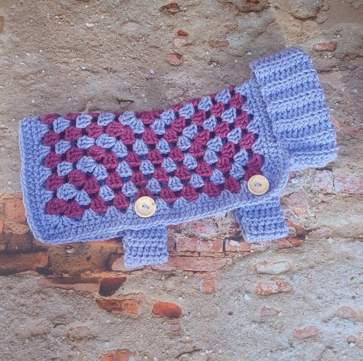 Chunky cozy pet jacket lavender blue and purple colours