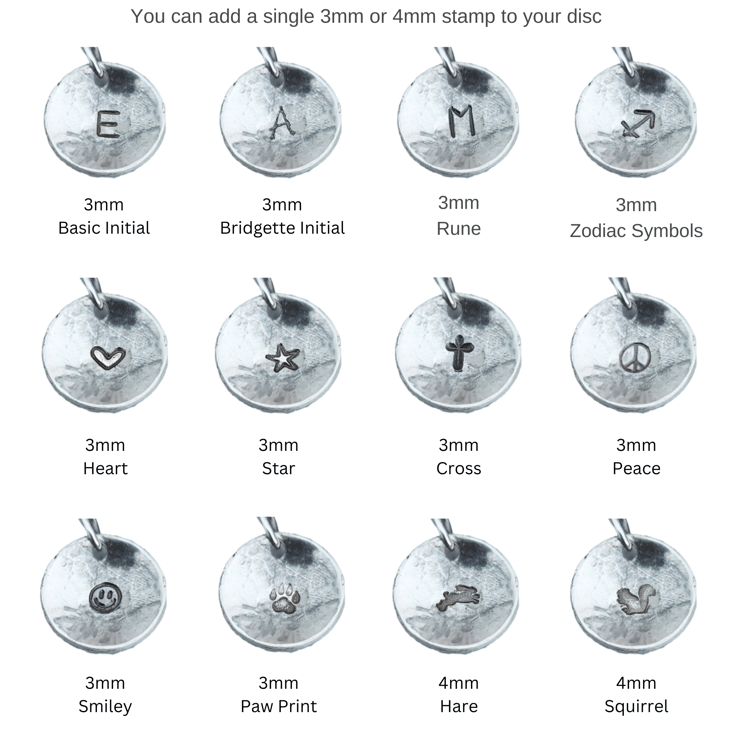 Your personalised lettering and other symbols are applied using a hammer and punches creating a slightly imperfect quality that adds to the unique and personal nature of the design. As no two items are the same, I will always show you pictures of your finished piece to ensure your are happy with the result prior to dispatch.