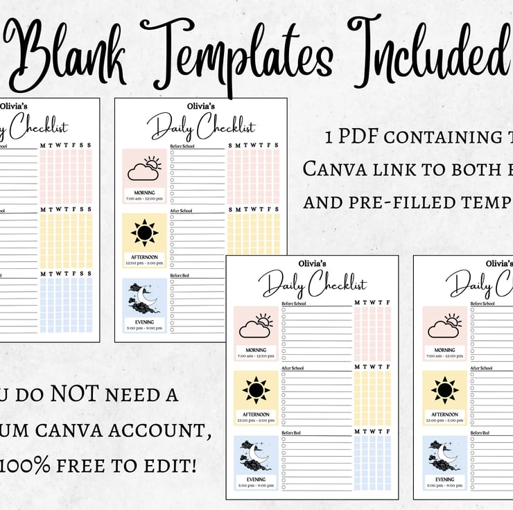Product Info - 1 PDF containing a link to 8 Canva templates ( 4 pre-filled and 4 blank)