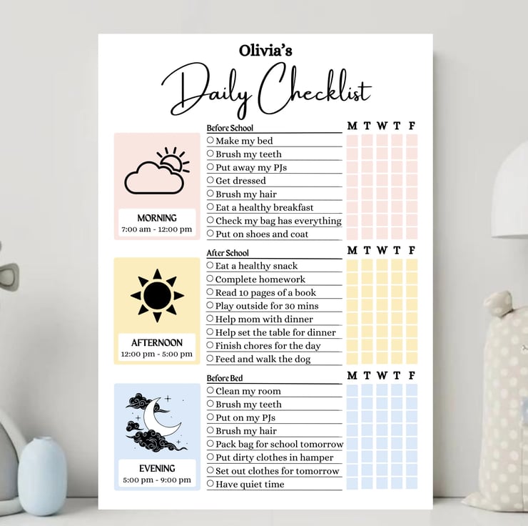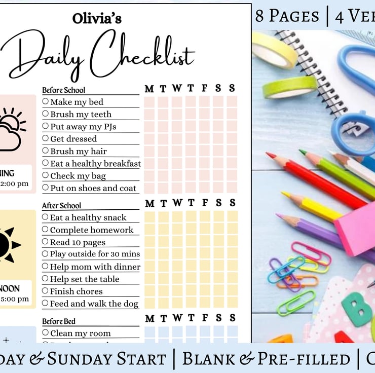 Encouraging Responsibility, Success, and Confidence in kids with my Daily School Checklist and Editable Chore Chart. Encouraging age-appropriate responsibilities in children is a fundamental element in their academic and social development. My visually engaging chore chart helps children grasp and remember their daily tasks while keeping them motivated to work toward rewarding goals. This printable PDF resource aids in establishing a structured daily routine, benefiting both traditional school and homeschool settings, ensuring their organization and the cultivation of a sense of accomplishment.