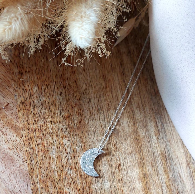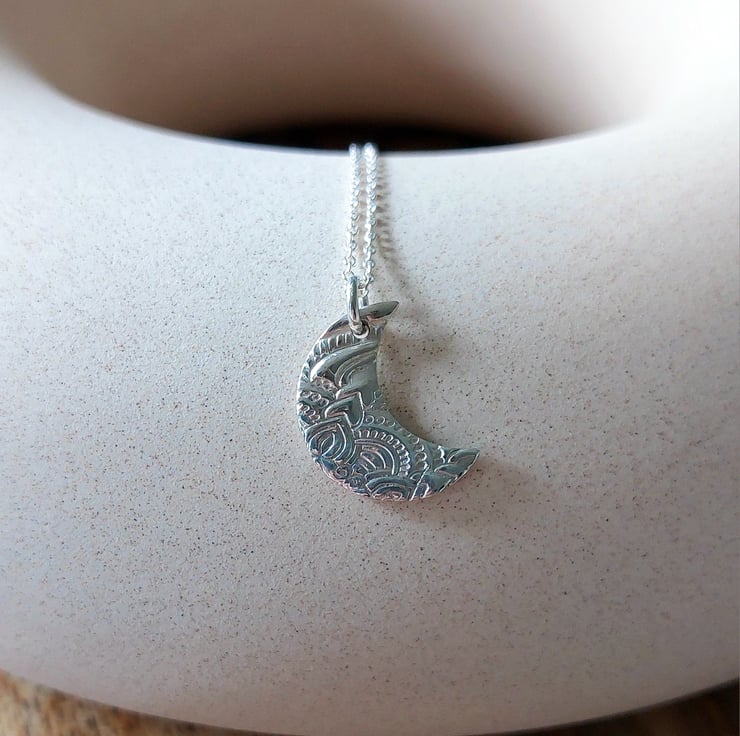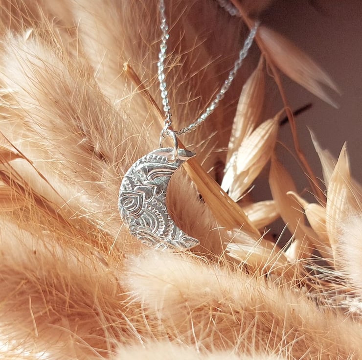 A beautiful every day necklace. Handmade from 999 Fine Silver clay the pendant is displayed on a delicate 18" 925 sterling silver chain.