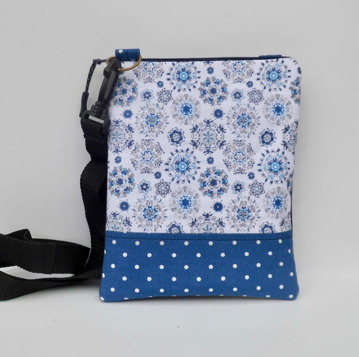 This is a single strap, cross-body bag with a zipped top, great for keeping a few essentials close to you.