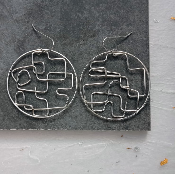 Are you looking for a unique pair of minimalist earrings? These sterling silver shaped wire round drop earrings would make a lovely gift for someone who wears statement jewellery.