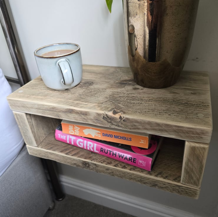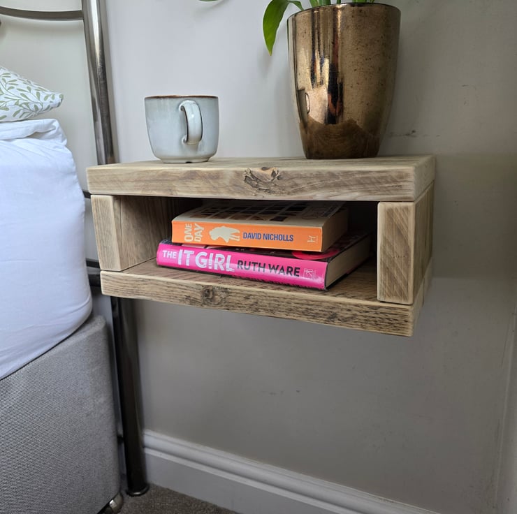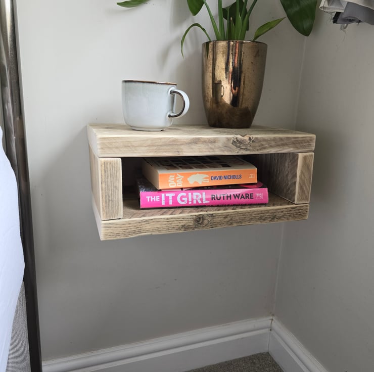 Upgrade your space with our Reclaimed Scaffold Board Floating Nightstand—where rustic meets contemporary.