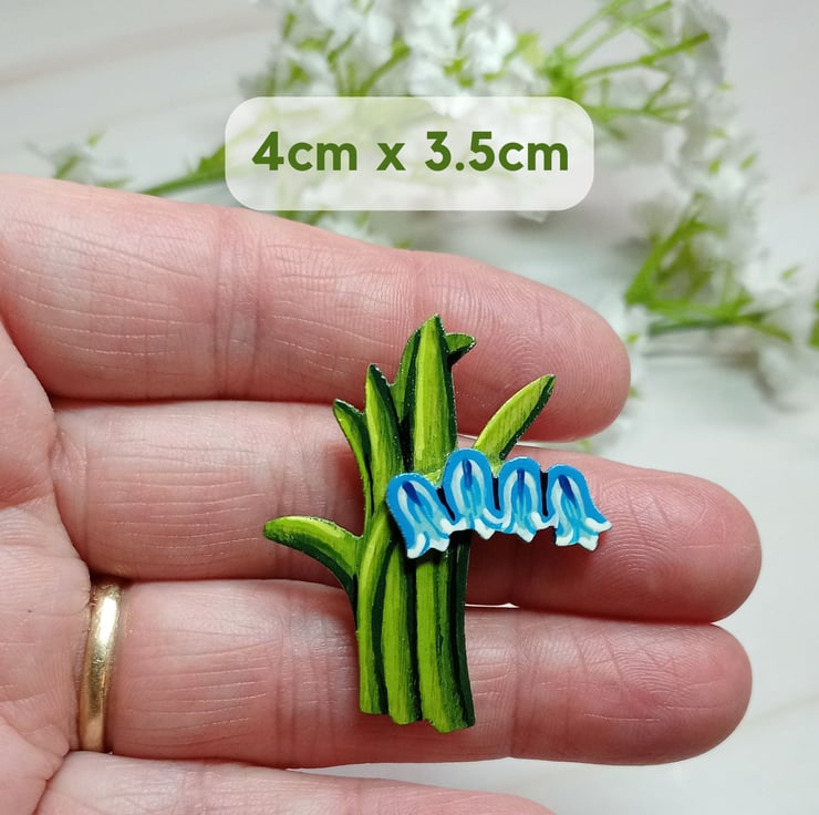 This hand painted bluebell brooch is made up of two layers of wood to give a 3D effect. The brooch is lightweight to wear on light fabrics but is durable and so makes a perfect keepsake gift to a loved one. You can even have the pin personalised on the back with a name, date or short message.