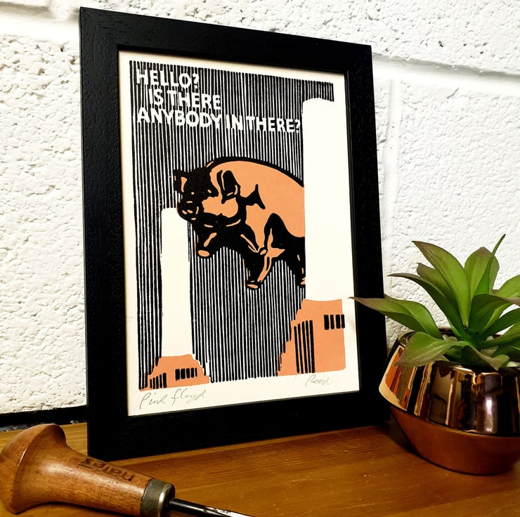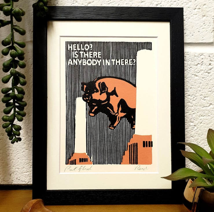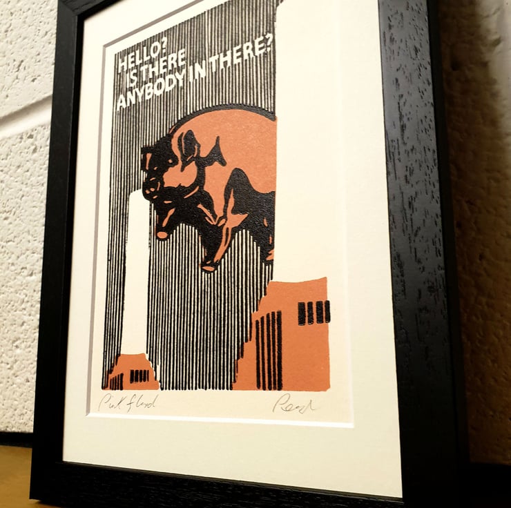 Original handmade print based on the Pink Floyd Animals Album cover. I wanted to create a close up of the political album cover.
