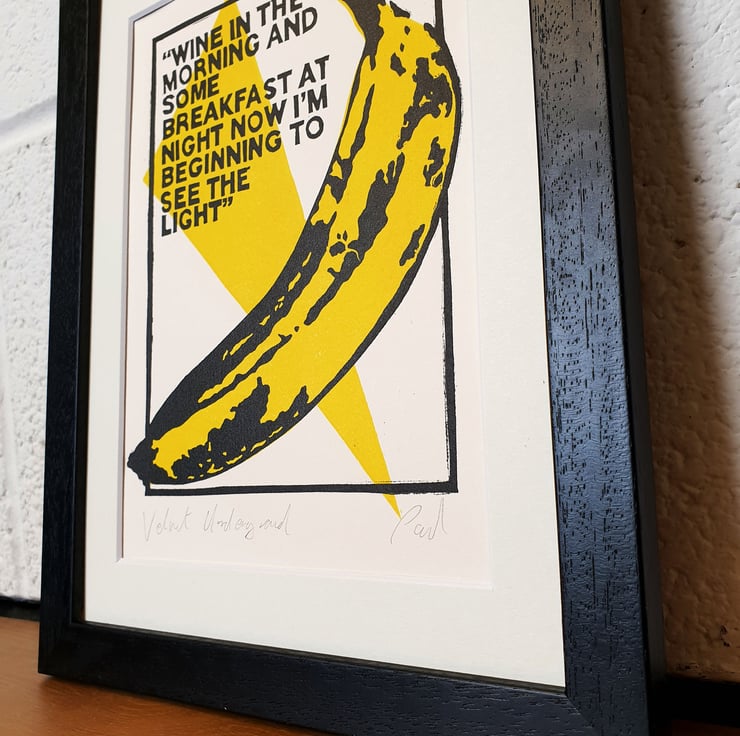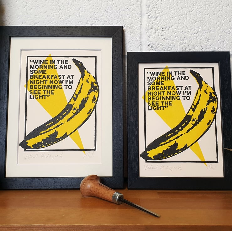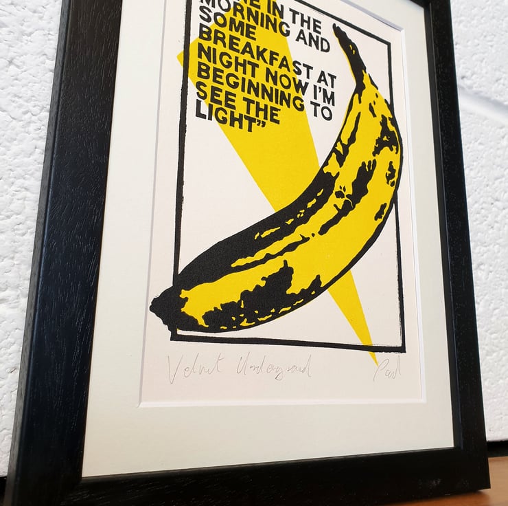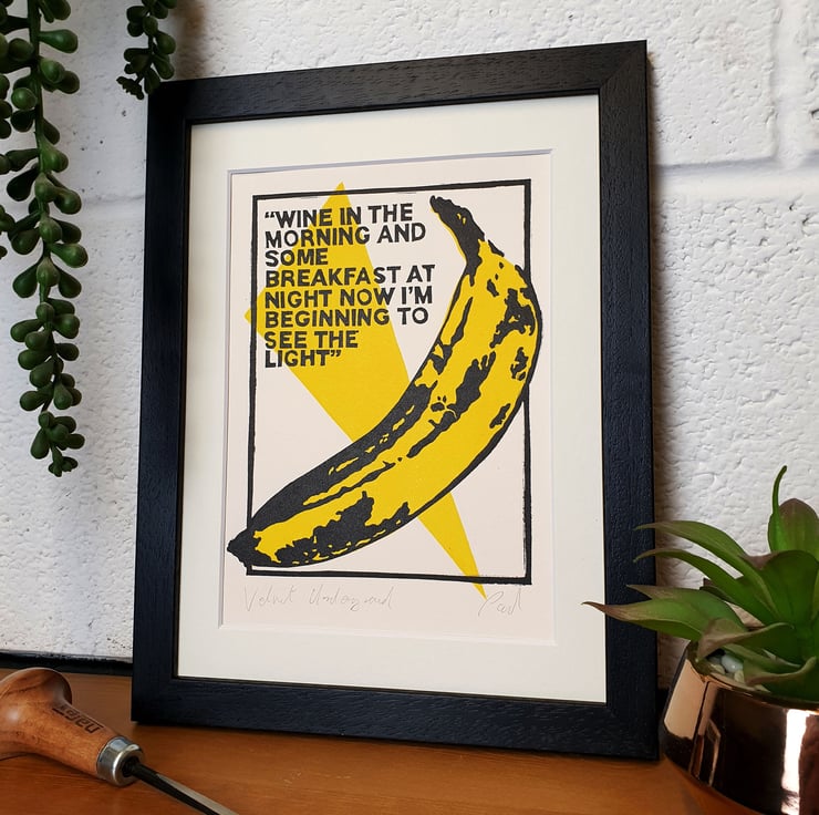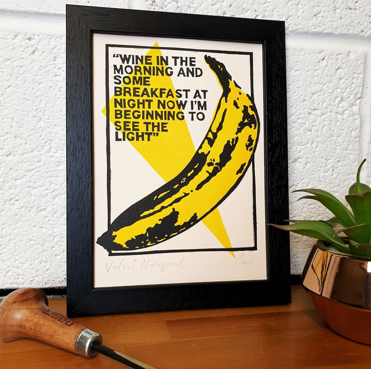 Original handmade print inspired some essential lifestyle Lyrics by the Velvet underground and the fantastic work by the legendary artist for their album cover.