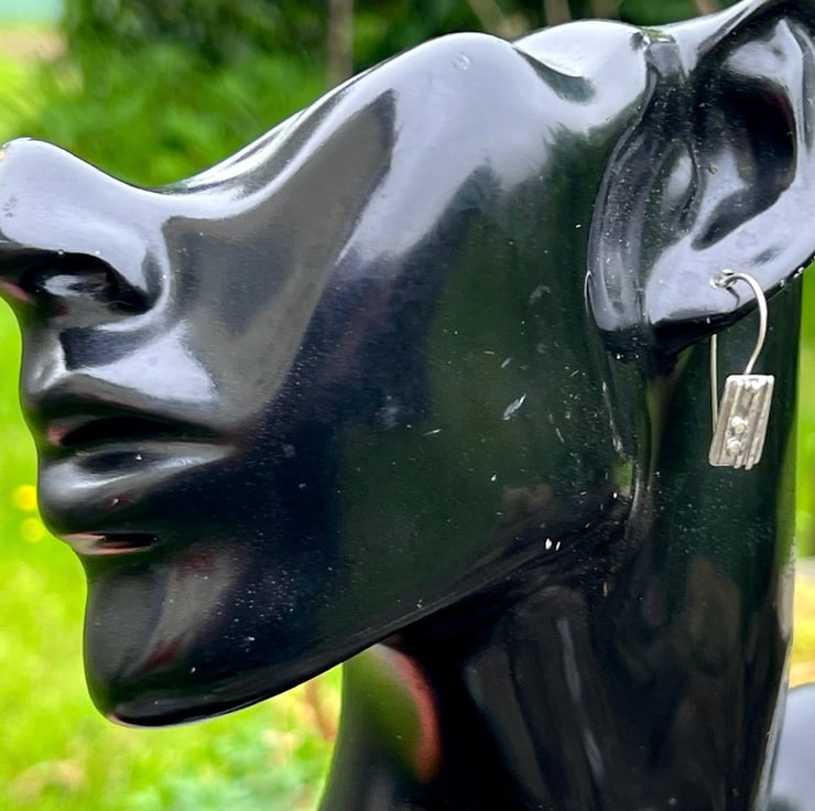 The earrings measure 12mm x 8mm and are made with eco sourced sterling silver. The total dangle is 23mm/ nearly one inch from the top of the handmade sterling silver ear hook .