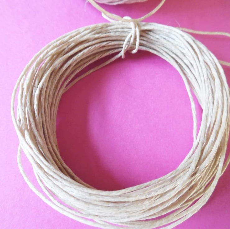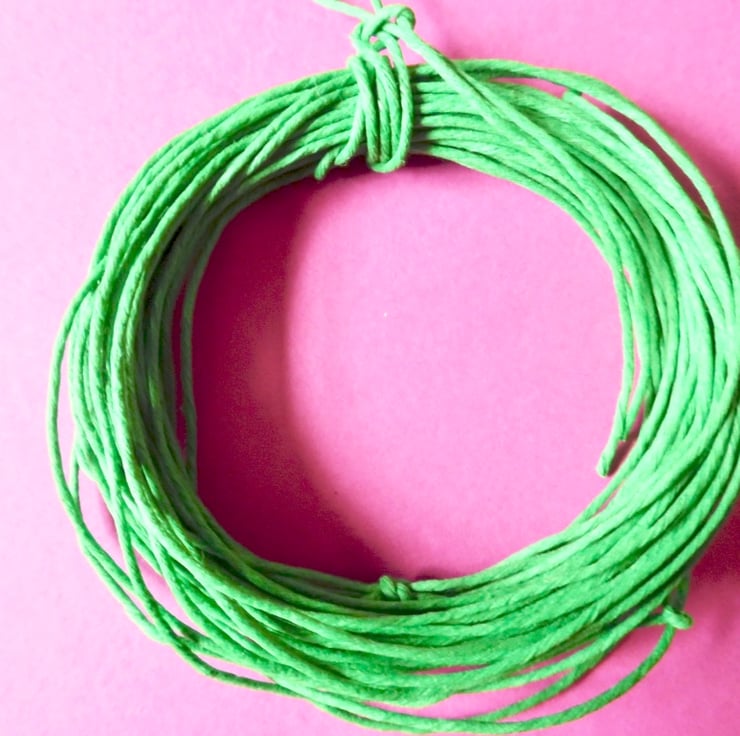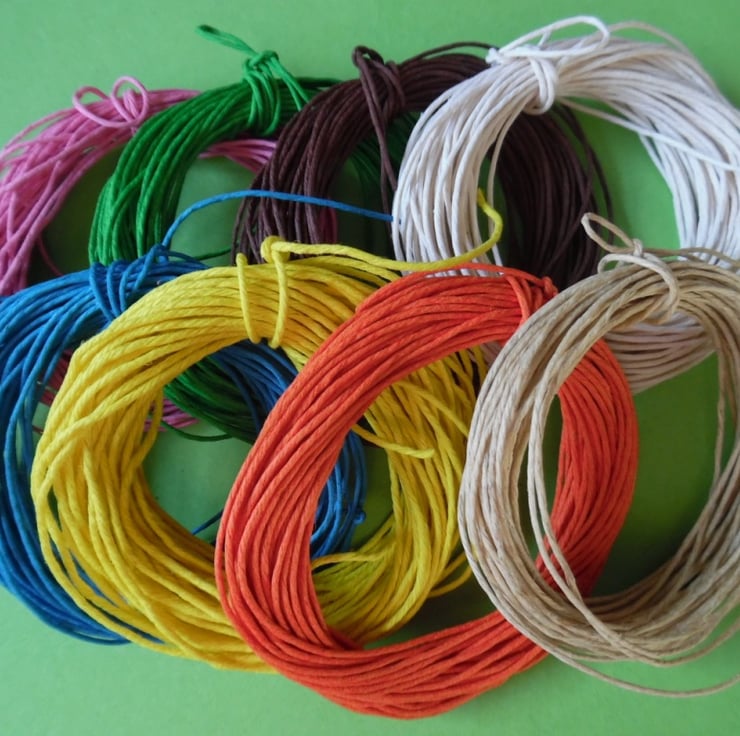 It comes in a variety of colours:- pink, orange, blue, brown, white, yellow. natural and green