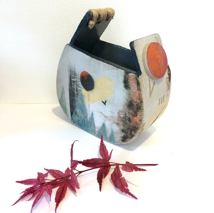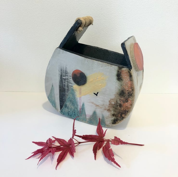 This handbuilt stoneware vessel has been inspired by the ancient landscapes of Dartmoor. Peppered with fascinating rock formations and prehistoric remains, juxtaposed against comparatively modern forest planting schemes this beautiful area gives much food for thought.