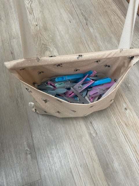 My favourite part of spring time is when you can finally peg your washing on the line but juggling the washing and handfuls of begs is not fun, so having a bag that I didn’t have to hold with all my bets inside was the perfect idea. Then when I take my washing off the line I pop them back in and then I can hang them on the back door ready for next time which also makes them last longer.